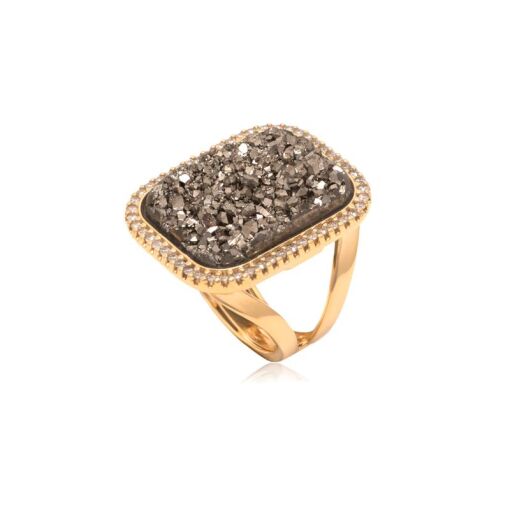 ANEL- BANHADO OURO- 18K PEDRA DRUSA PLATINA