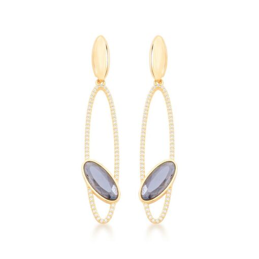 BRINCO BANHADO OURO 18K - PEDRA OBSIDIANA FUME PEROLIZADA