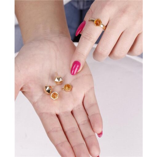 CONJUNTO GOTA BANHADO OURO 18K - PEDRA QUARTZO AMETISTA