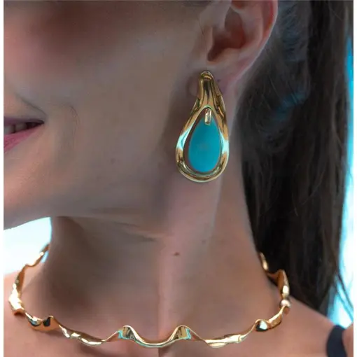 BRINCO BANHADO OURO 18K - ÁGATA AZUL CÉU PEROLIZADA