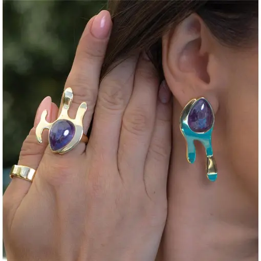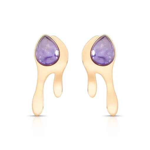 BRINCO BANHADO OURO 18K - QUARTZO AMETISTA PEROLIZADA
