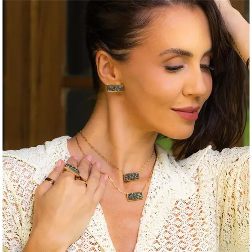 BRINCO BANHADO OURO 18K - DRUSA NEGRA