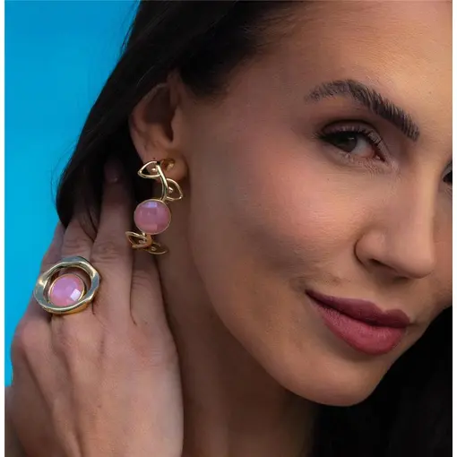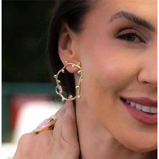 BRINCO BANHADO OURO 18K- PEDRA QUARTZO ARAGONITA PEROLIZADA