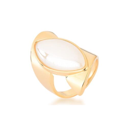 ANEL- BANHADO OURO- 18K PEDRA QUARTZO LEITOSO
