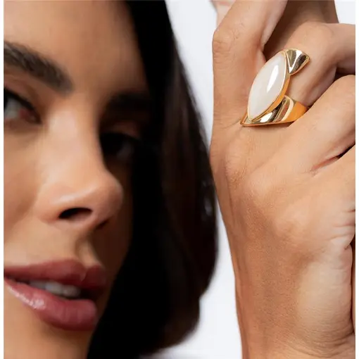 ANEL BANHADO OURO 18K- PEDRA QUARTZO ARAGONITA PEROLIZADA